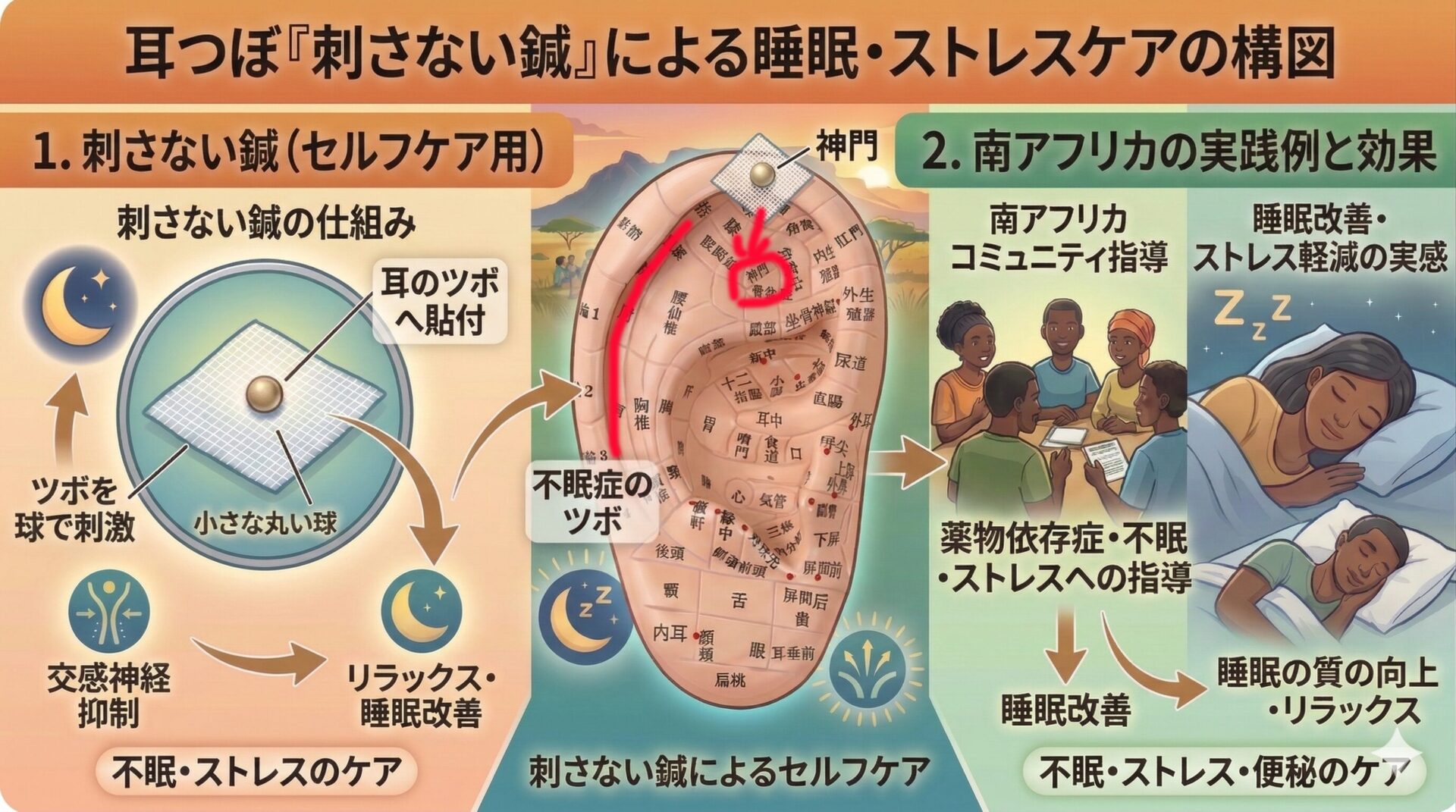 耳つぼ「刺さない鍼」で眠りが変わる!南アフリカの実践例から学ぶ睡眠・ストレスケア