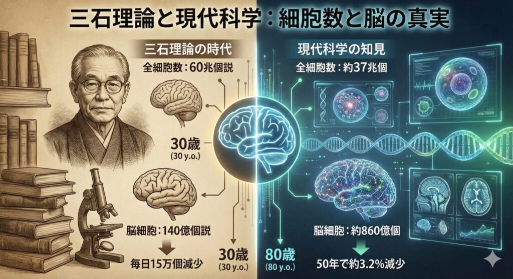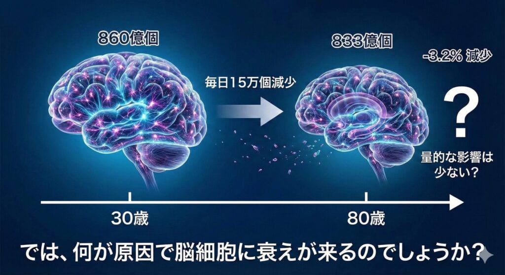 30歳以降、毎日15万個の脳細胞が減るとすれば、80歳で脳細胞はいくつ残っているのか?
