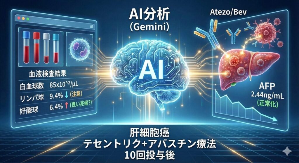 今日のコラムは昨日の続きになります。免疫チェックポイント阻害剤(テセントリク)と血管新生阻害剤(アバスチン)の11回目の投与を終え、その直前での血液検査結果を受けて、問題点をAI(Gemini)に聞いたその回答は?が今日のテーマになります。 まず、... -